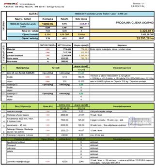 Dostavljamo excel datoteku - mogućnost unosa vlastitih satnica, cijena materijala i dodatnih troškova.